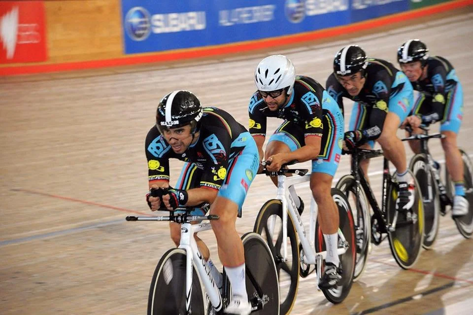 World Masters Track Championships 2014 - the team of Jays Austin, Alex Arancibia, Rick McArdle & Matt Glanville took Silver in the Masters Teams Pursuit
