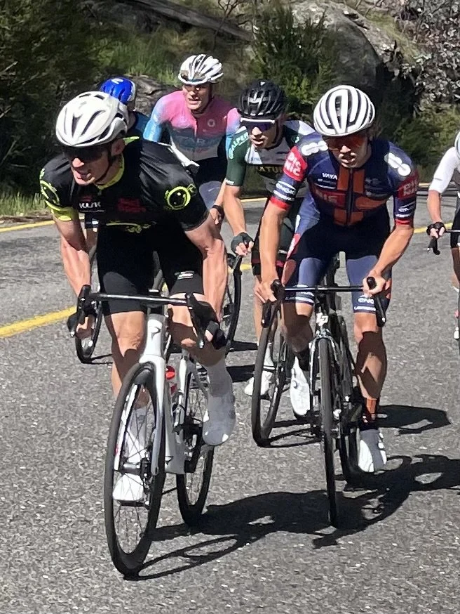 BiciSport @ Tour of Bright 2025 - Stage 3 finish at Mount Buffalo and Dudley Hoskin (BiciSport Happy Wheels) on a charge beside Oscar Onley (4th at the Tour de France 2025) …. go Dudley