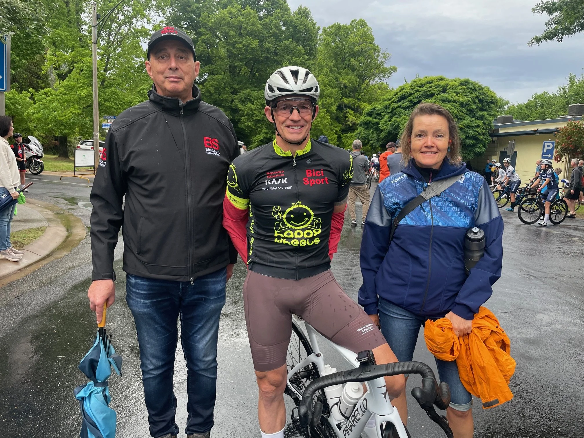 BiciSport @ Tour of Bright 2025 @ 5 Dec - at the Harrietville Cafe … Rufus the new BiciSport recruit