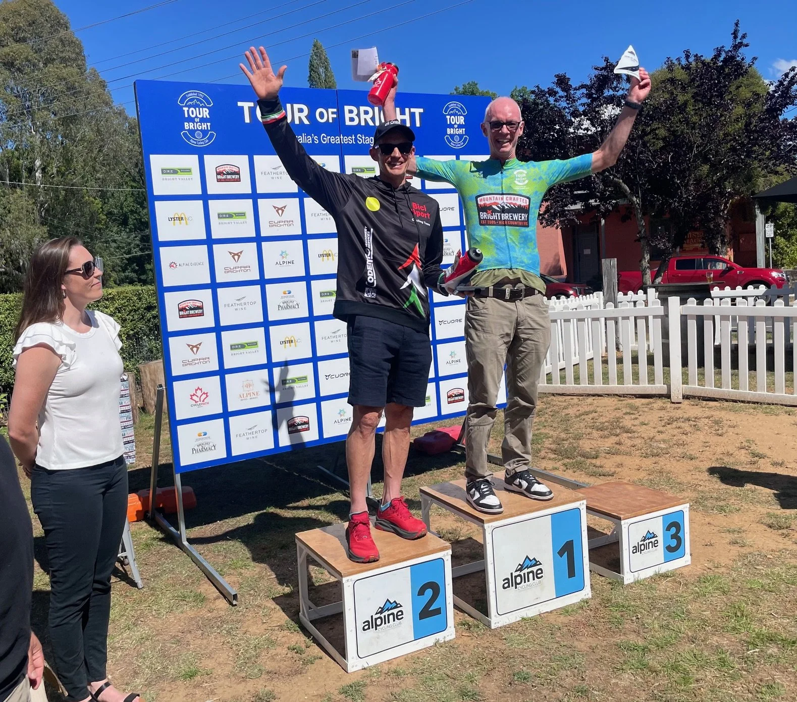 BiciSport @ Tour of Bright 2025 - Dudley Hoskin (BiciSport Happy Wheels) takes a well deserved second in the General Classification in Masters 55+ category.