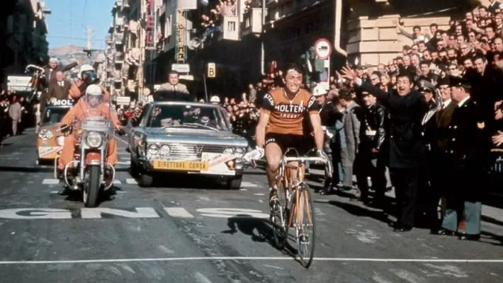 Michelle was an outstanding cyclist of his era who won the Milan San Remo Classic in 1970 (see picture above). Michelle won numerous stages in the Giro and was prominent in the Tour de France. A cycling legend in Italy & beyond.