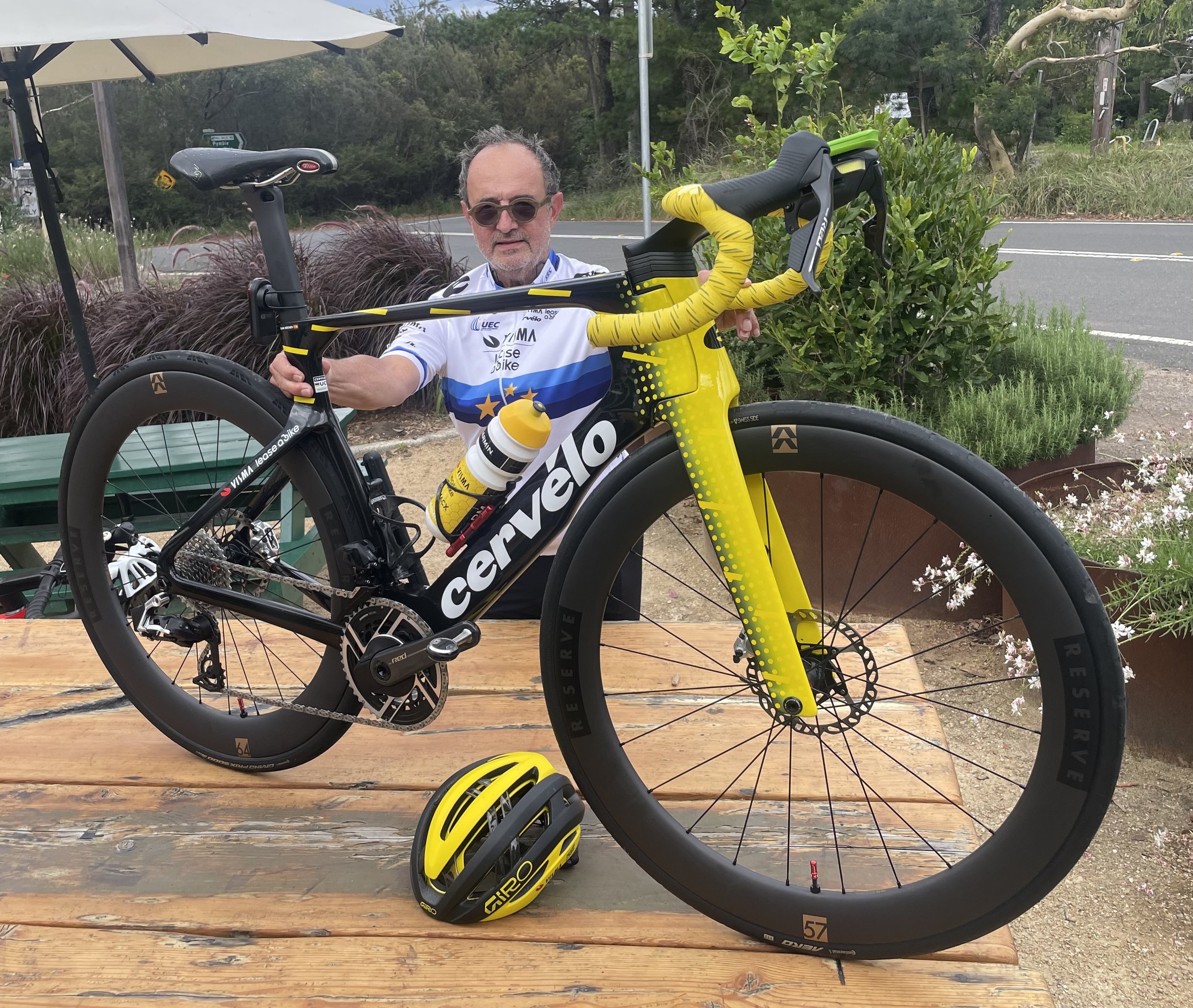 BiciSport @ Berkelow Cafe - Dan Brenner (BiciSport) putting a lovely Cervelo (Visma Pro Team) on display at Berkelow