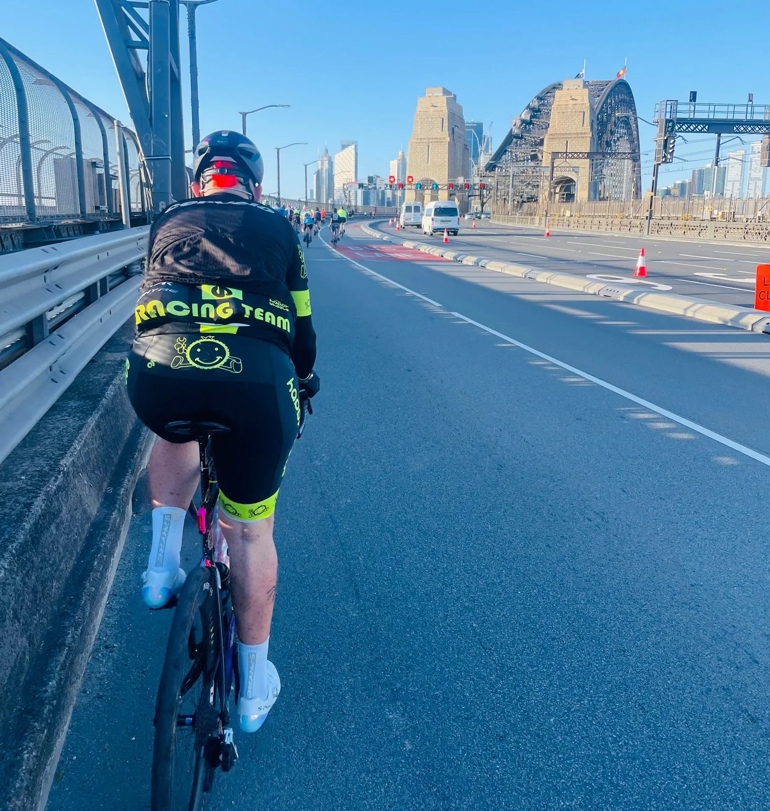 Sydney Spring Cycle @ Harbour Bridge @ 12 Oct - Stew Campbell (BiciSport Happy Wheels) approaches the famous Coat Hanger