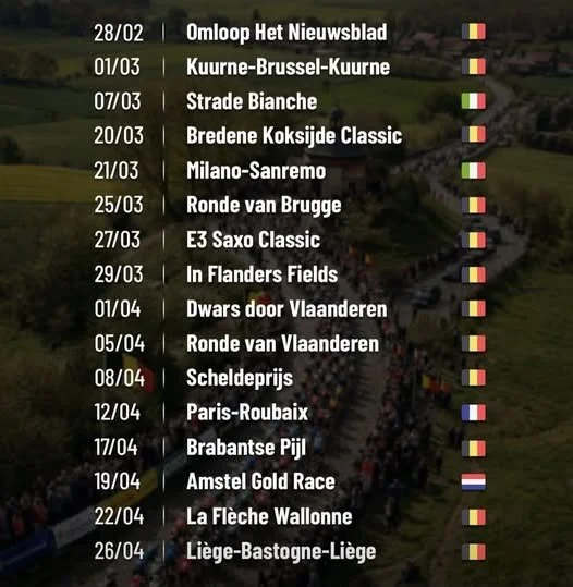 * Mar 16 - Apr 22 - BiciSport to Belgian Spring Classics - MOR