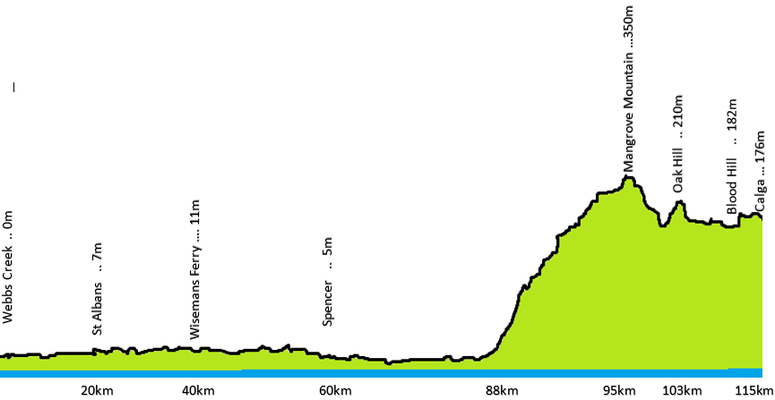 115k - Wisemans Ferry - St Albans - Wisemans Ferry - Spencer - Bottom of the climb - Wisemans Ferry (collect your car)
